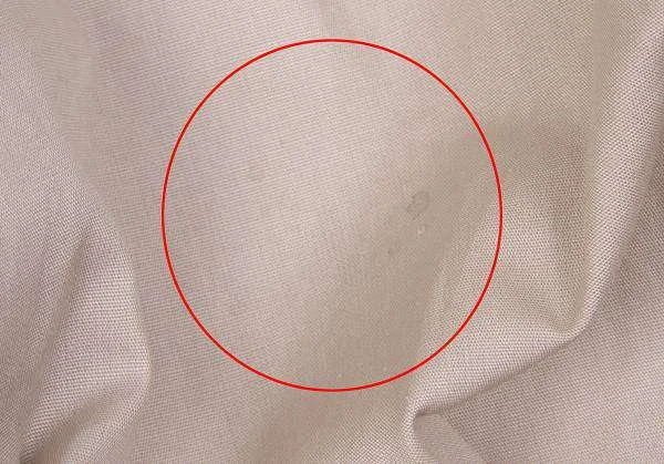 後身頃に薄シミがあります(写真参照)。その他は目立ったシミ、汚れ、ほつれ等なくいい状態です。クリーニング済み