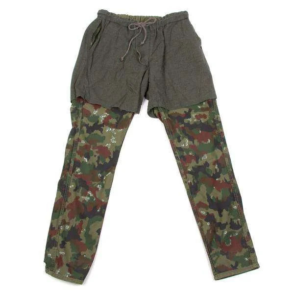 【SALE】フラボアFRAPBOIS リバーシブルカモフラ柄ゴムウエストパンツ カーキM位