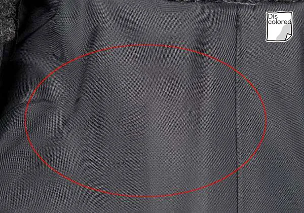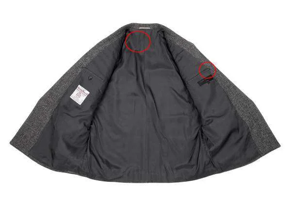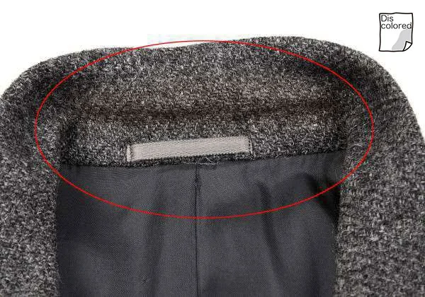 襟裏、袖裏に汚れ、内ポケット口にスレがあります(写真参照)。