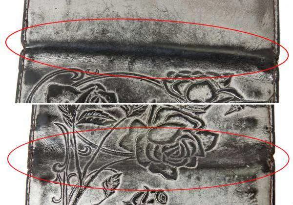 全体的に擦れキズ、角部分破れ、金属部分に剥がれがあります(写真参照)。