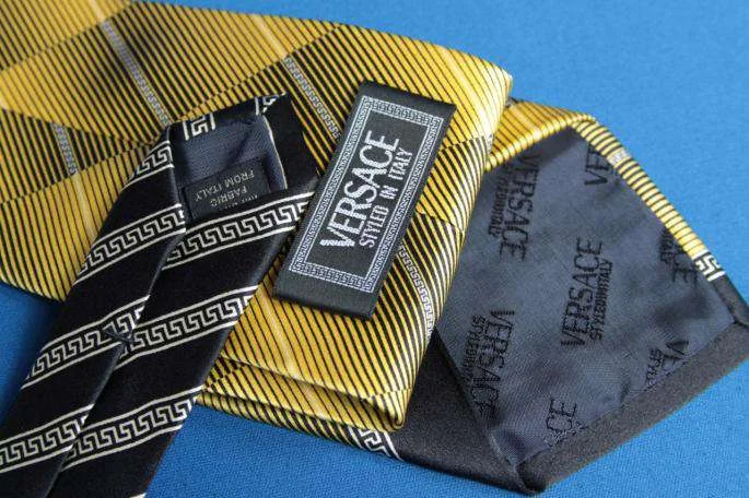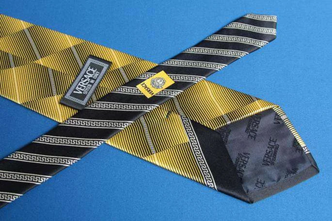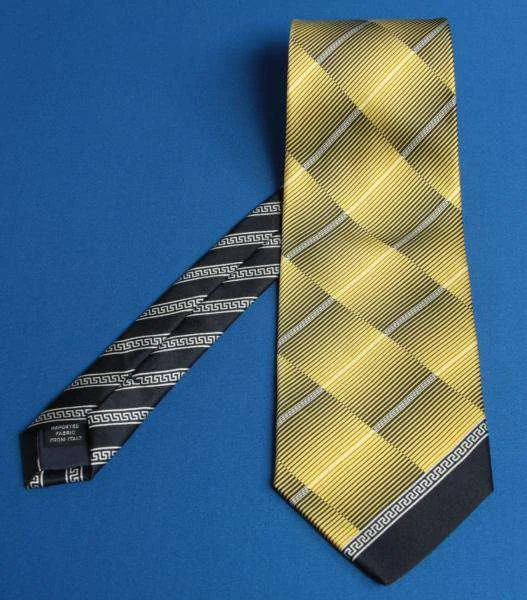 ジャンニ ヴェルサーチGIANNI VERSACE チェック柄シルクネクタイ 黒黄