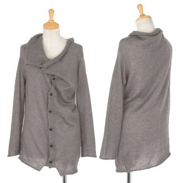 【SALE】ヨウジヤマモト ノアールYohji Yamamoto NOIR アシンメトリーモヘアナイロンローゲージニットカーディガン グレー2