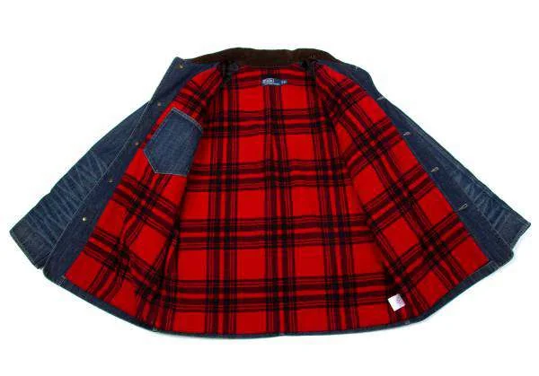 【SALE】ポロbyラルフローレンPOLO by Ralph Lauren デニム裏チェックカバーオール インディゴ茶赤XL
