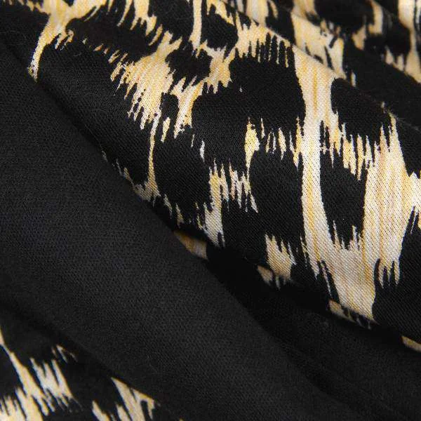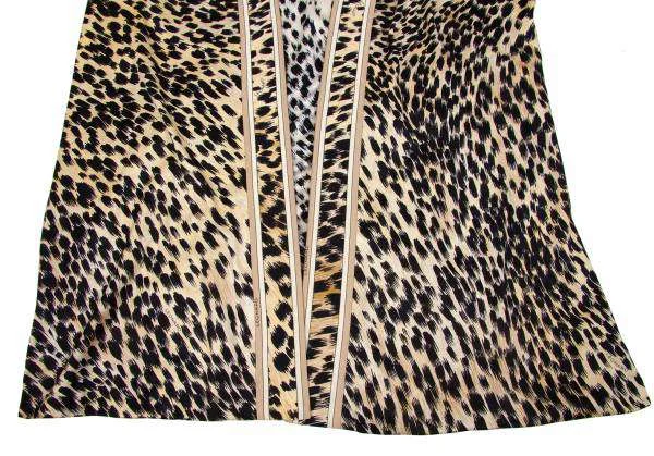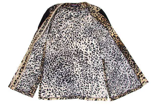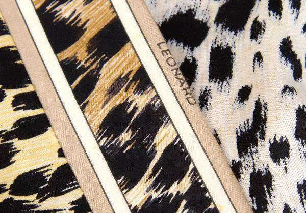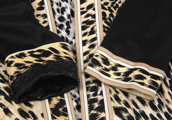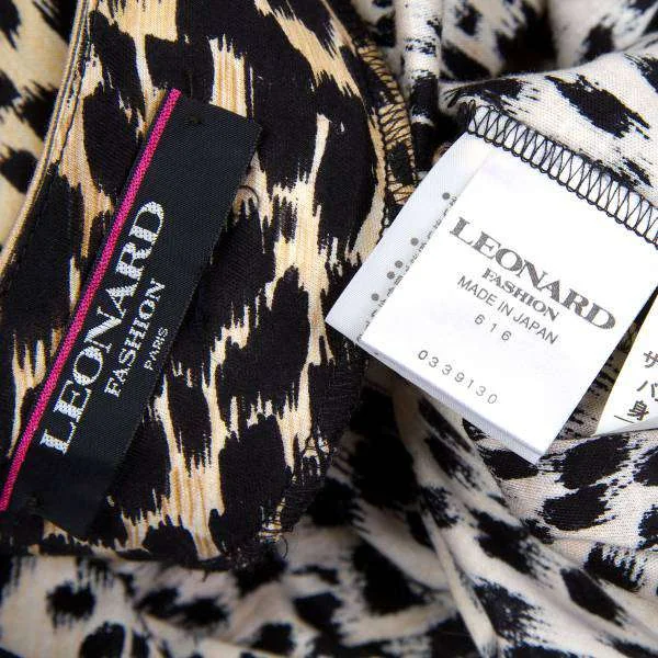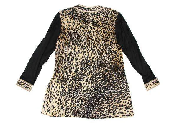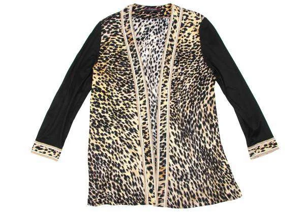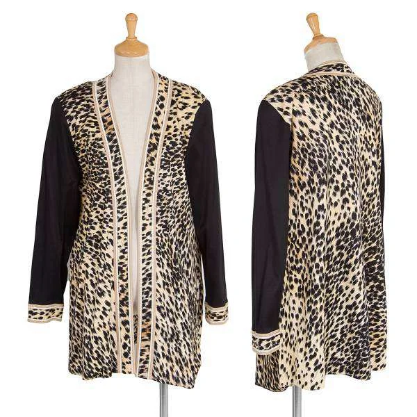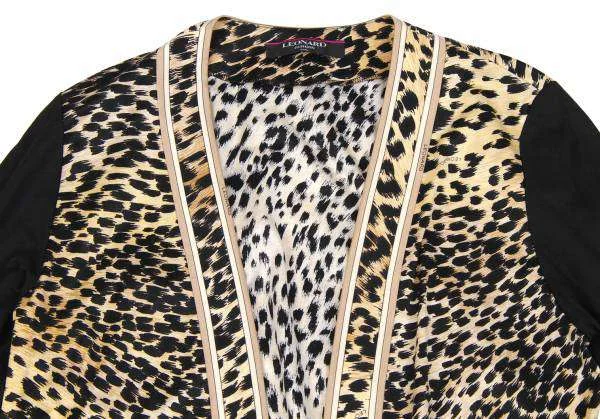 レオナールLEONARD ヒョウ柄プリントボタンレスコットンカーディガン 黒ベージュL