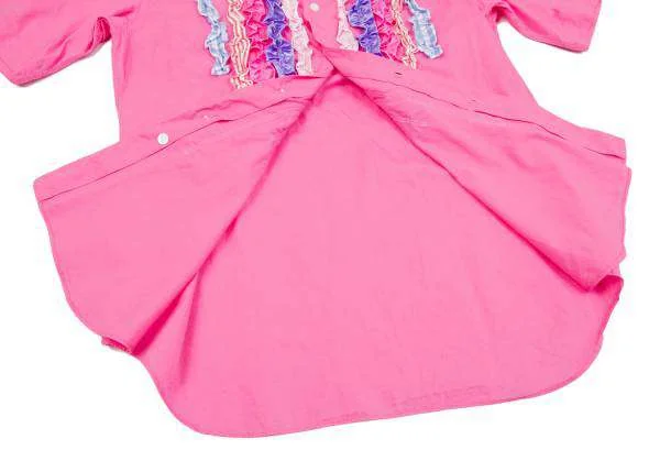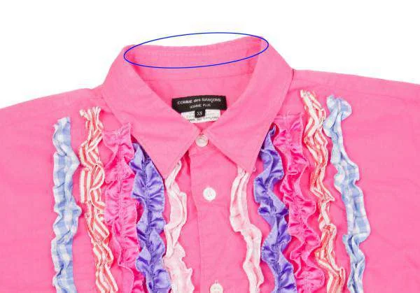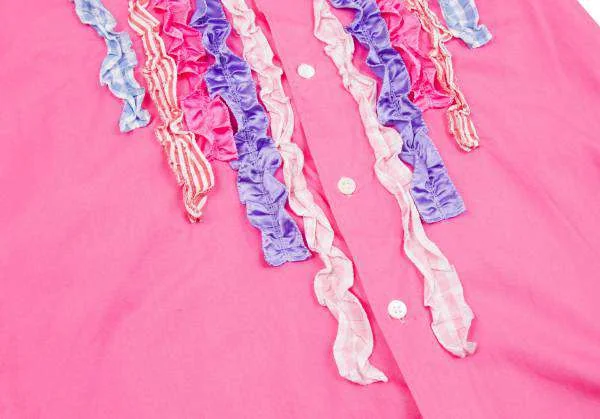 コムデギャルソン オムプリュスCOMME des GARCONS HOMME PLUS フリルデザイン半袖シャツ ピンクXS