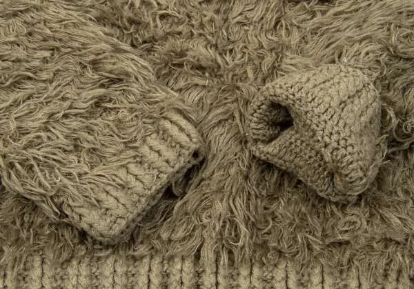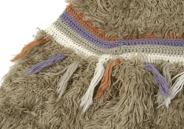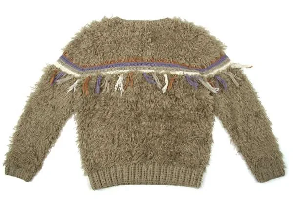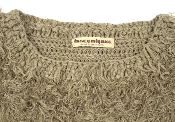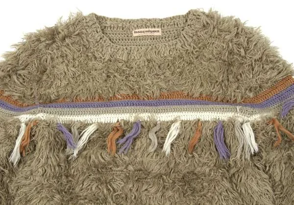 イッセイミヤケISSEY MIYAKE 総フリンジライン切替ニット カーキF