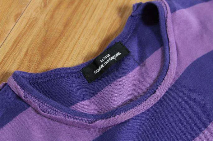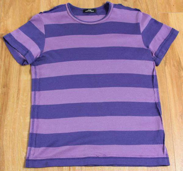 トリコ コムデギャルソンtricot ボーダーシーム半袖カットソーM位 パープル青表示なし(M位)