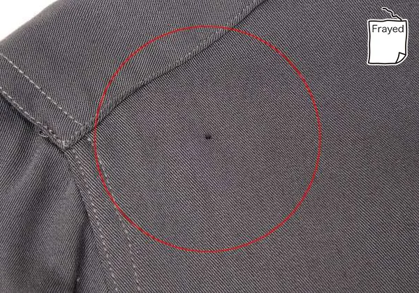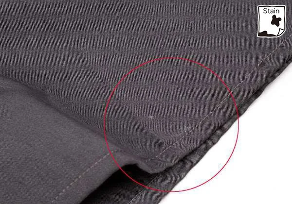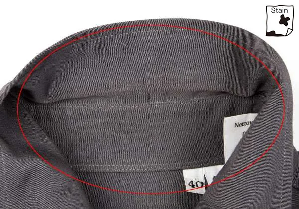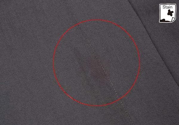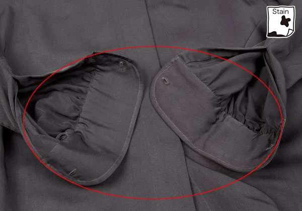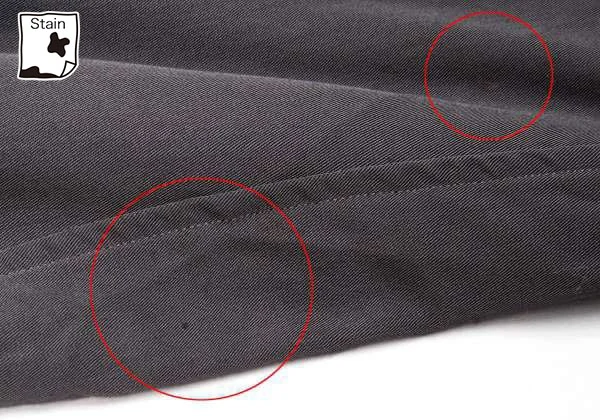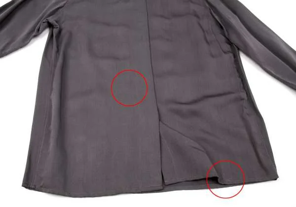 襟裏、袖裏に汚れあり。身頃に薄汚れ、引っ掛けあり。(写真参照)その他に目立ったシミ、汚れ、ほつれ等はありません。