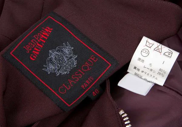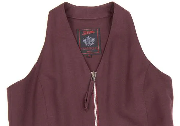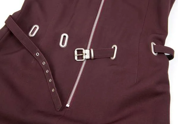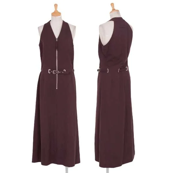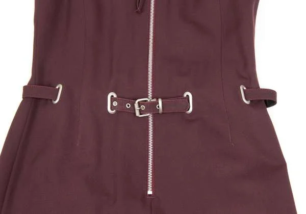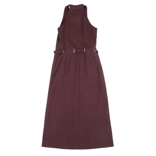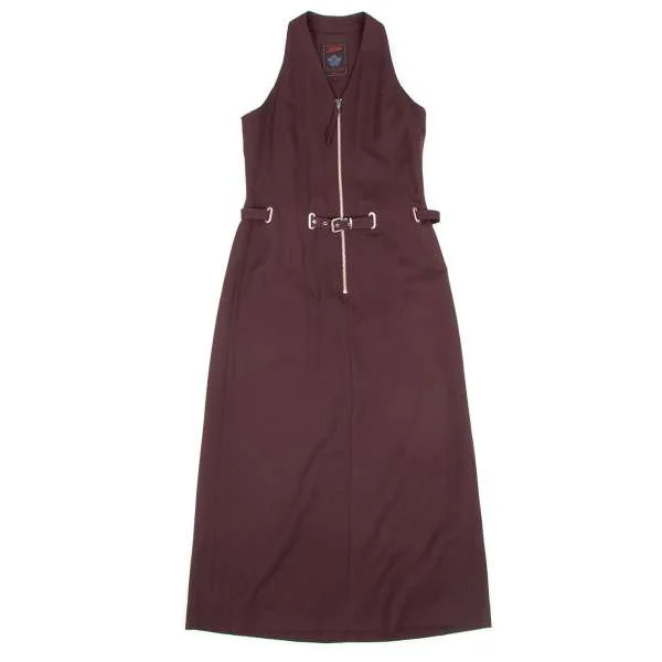 【SALE】ジャンポールゴルチエ クラシックJean Paul GAULTIER CLASSIQUE ウールギャバホルターネックベルトザインワンピース エンジ40