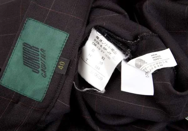 ジュニアゴルチエJUNIOR GAULTIER ウールチェックサスペンダースカート 茶40
