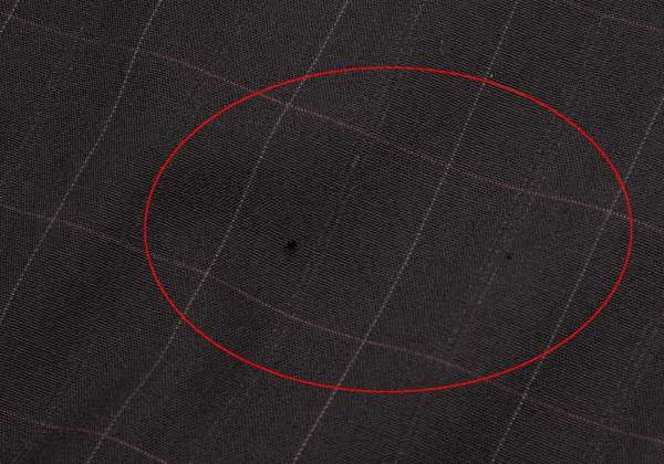 前に小穴あり。後ろ縫い目に緩みあり。(写真参照)