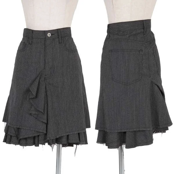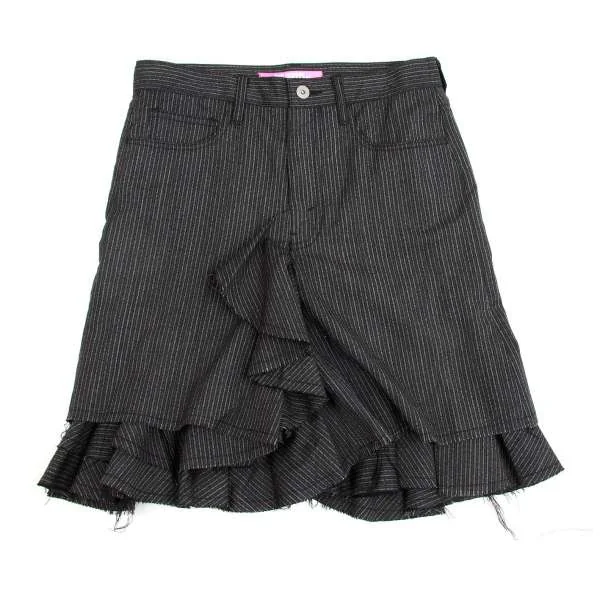 【SALE】ジュンヤワタナベマンピンク コムデギャルソンJUNYA WATANABE MAN PINK COMME des GARCONSウールストライプ裾フリルスカート 黒白M
