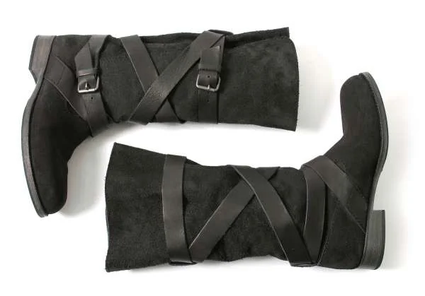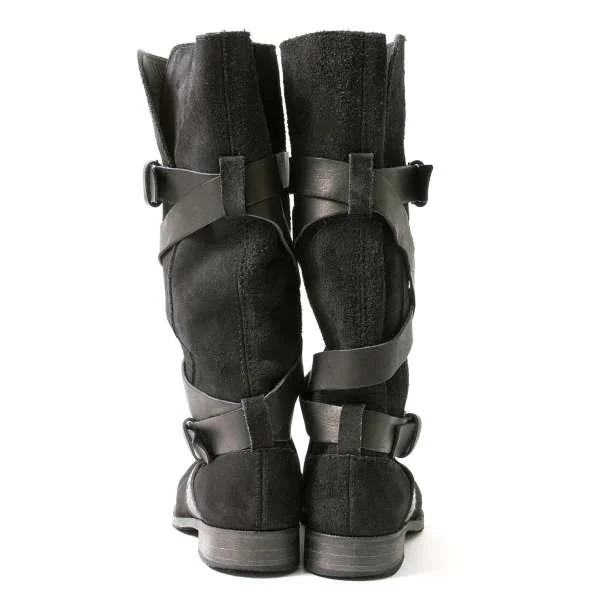 【SALE】ジュンヤワタナベ コムデギャルソンJUNYA WATANABE COMME des GARCONSベルトデザインスウェードロングブーツ 黒 黒 M