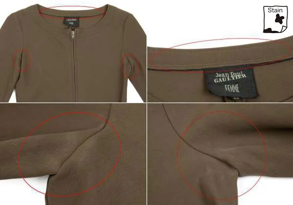 【SALE】ジャンポールゴルチエ ファムJean Paul GAULTIER FEMME ノーカラージャケットセットアップスーツ カーキ40
