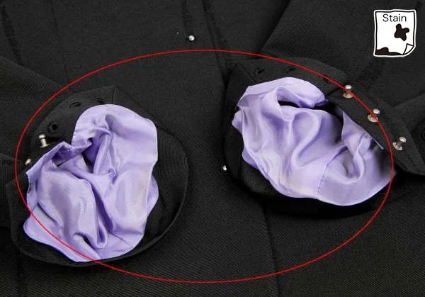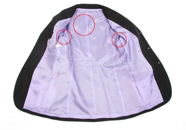 ジャケット 袖裏、脇下にシミあり。裏地に薄汚れあり。スカート 裾に薄シミあり。(写真参照)その他に目立ったシミ、汚れ、ほつれ等なくいい状態です。クリーニング済み