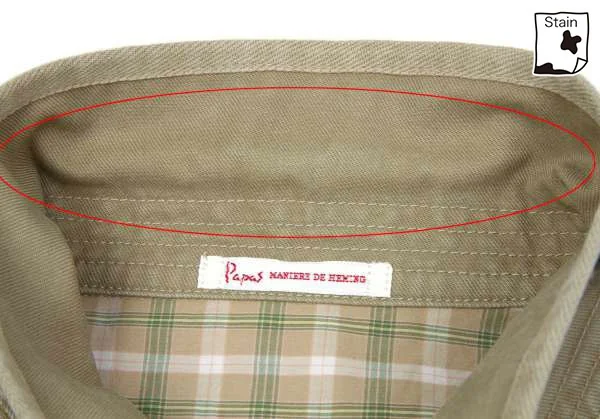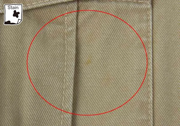 着用感、襟元色あせ、右ポケットにシミが有ります(写真参照)クリーニング済み