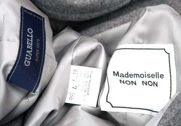 【SALE】マドモアゼルノンノンMademoiselle NON NON GUABEO SUPER120’s カシミヤ混ウールジャケット 杢グレーL