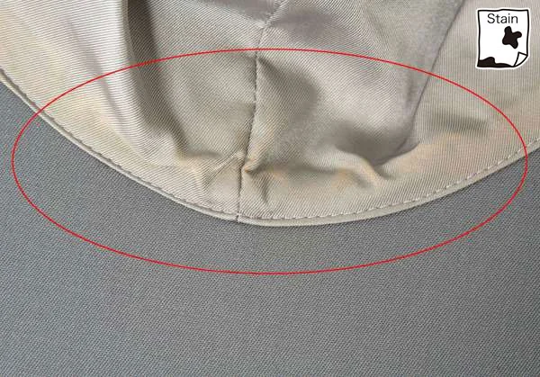 クラウン部分・裏側被り口・ツバ部分汚れがあります(画像参照)。