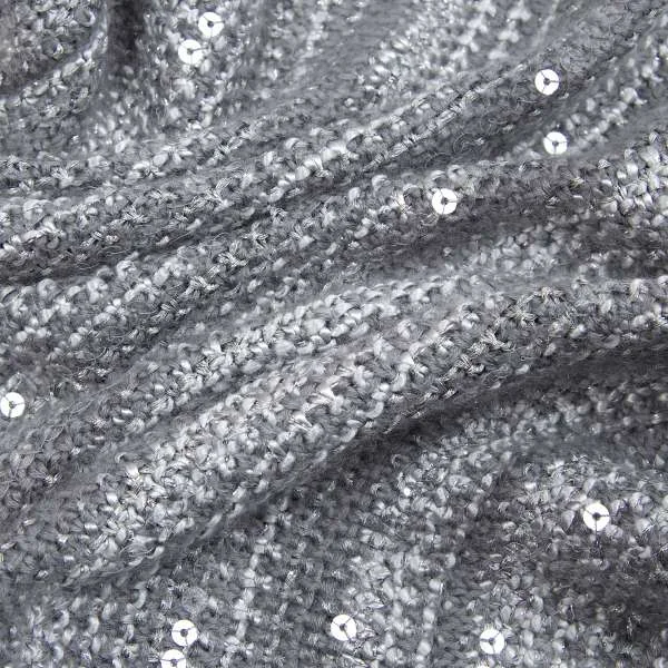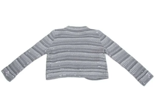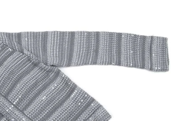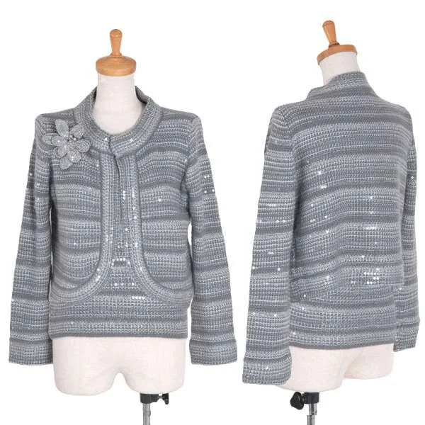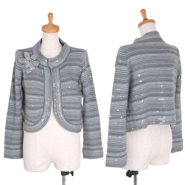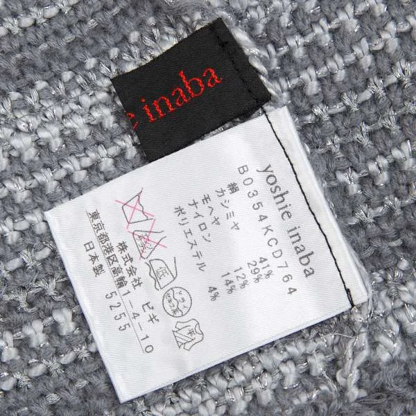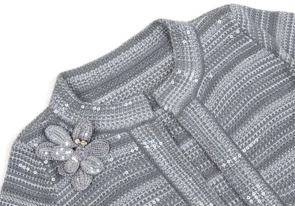 【SALE】ヨシエイナバyoshie inaba ブローチ付きカシミア混スパンコールデザインニットジャケット グレーラメM位