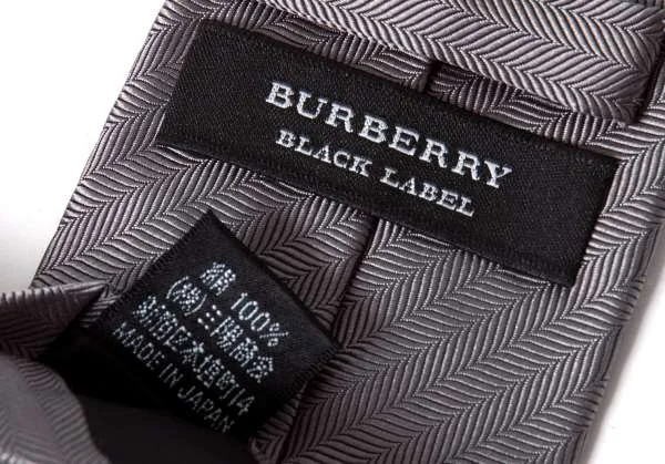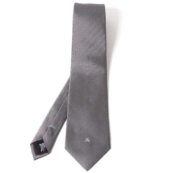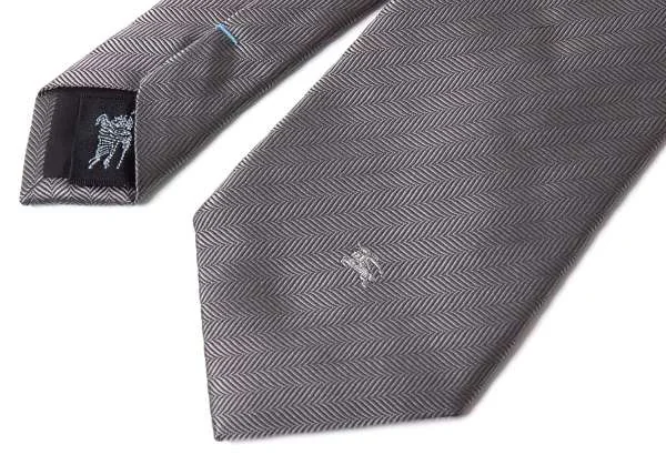バーバリーブラックレーベルBURBERRY BLACK LABEL ポイント刺繍ヘリンボーンシルクネクタイ グレー