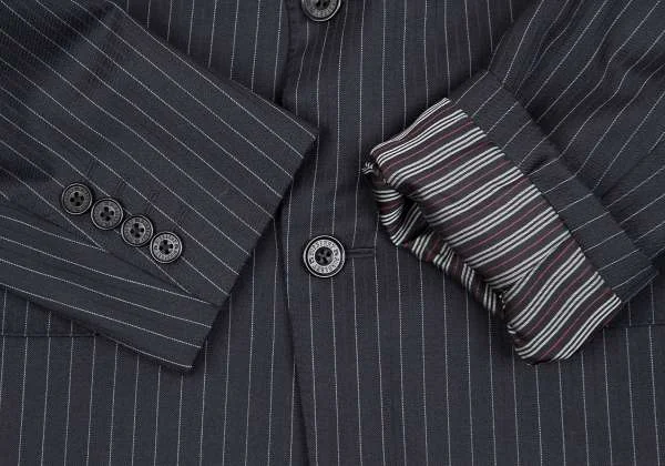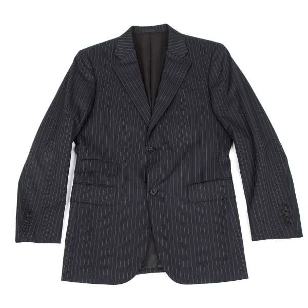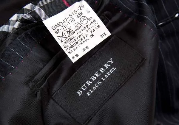 バーバリーブラックレーベルBURBERRY BLACK LABEL SUPER100'sウールシルクストライプジャケット 紺38R