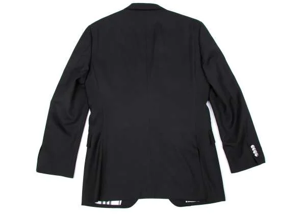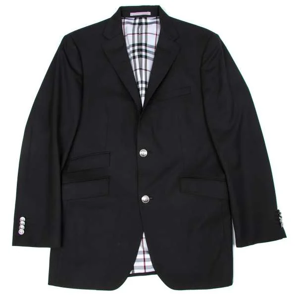 バーバリーブラックレーベルBURBERRY BLACK LABEL 裏チェック2B銀ボタンブレザー 紺M