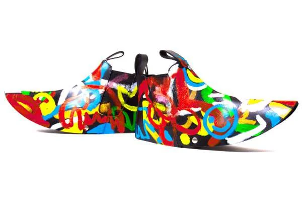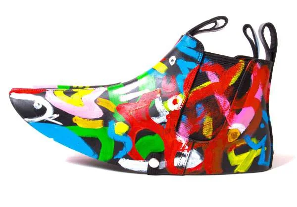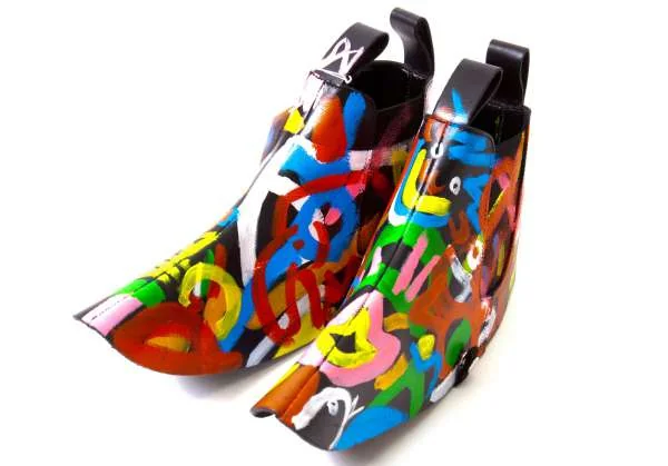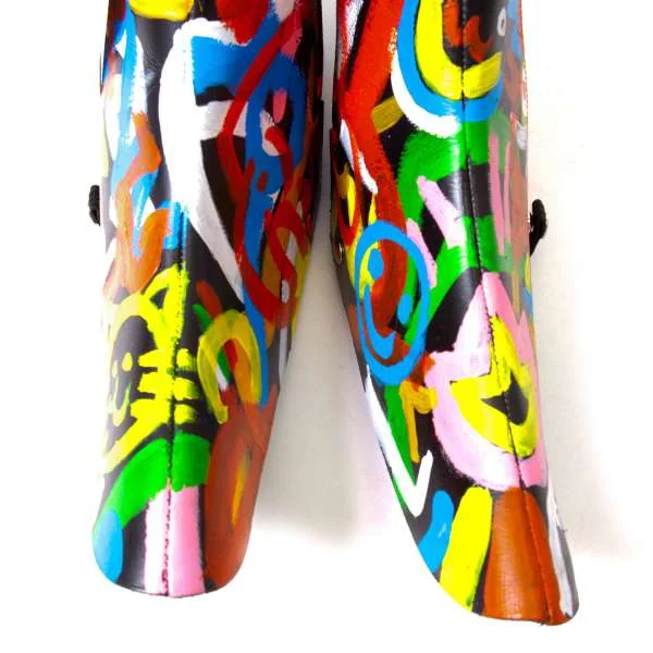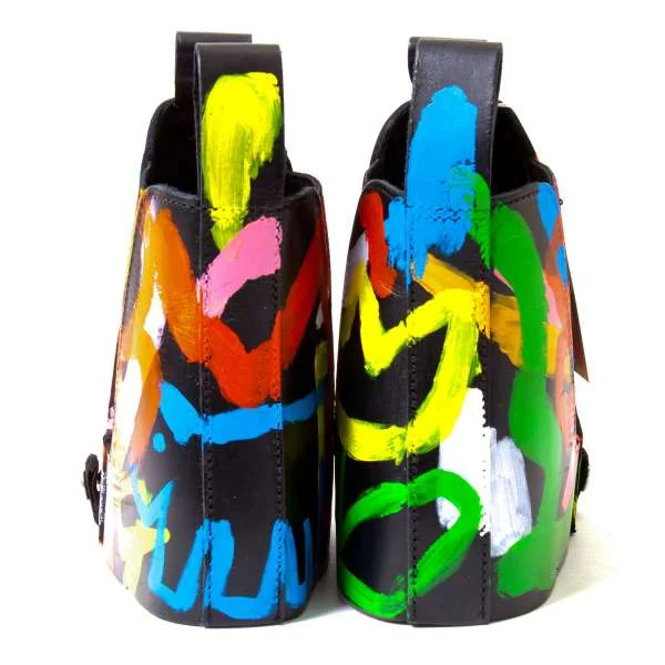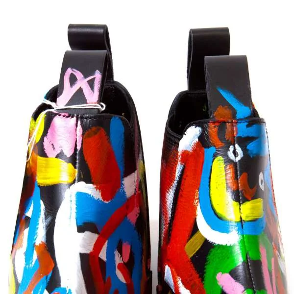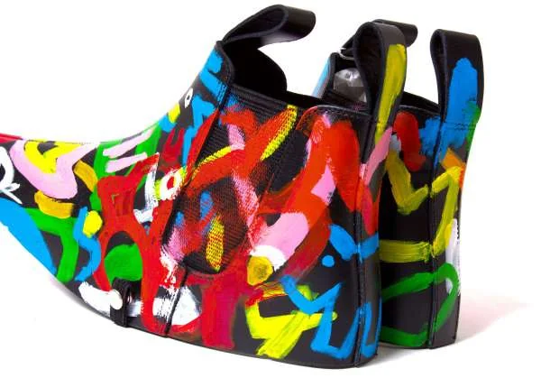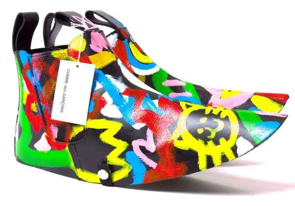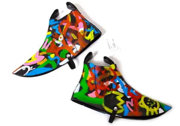 新品!【SALE】新品!コムデギャルソンCOMME des GARCONS ペイントレザーサイドゴアブーツカバー 黒マルチS