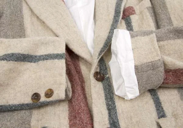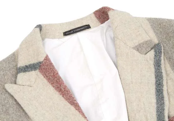 【最終値下げ】ワイズフォーメンY's for men 裏シャツ地ウールボーダー2Bジャケット ベージュ他3