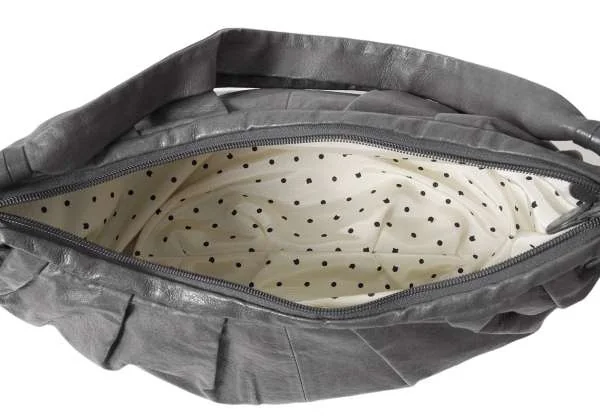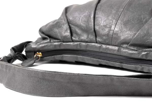ツモリチサトTSUMORI CHISATO ドット型押しクロワッサンレザーハンドバッグ グレー