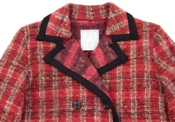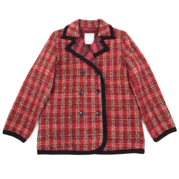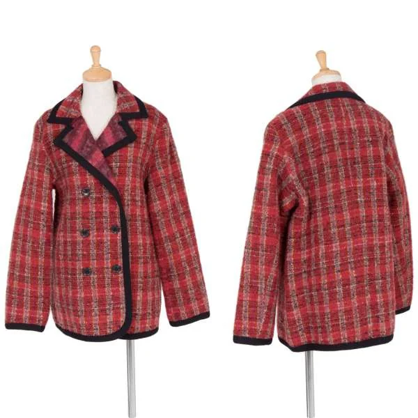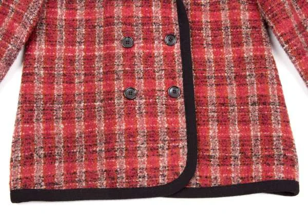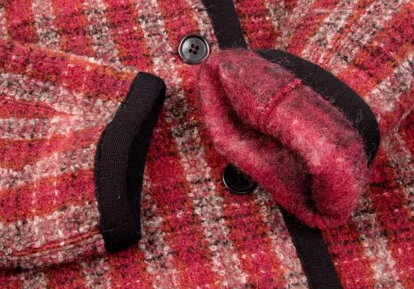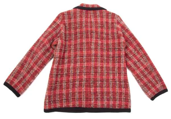 【最終値下げ】ワークショップWORK SHOP ウールチェックニットジャケット 赤M位
