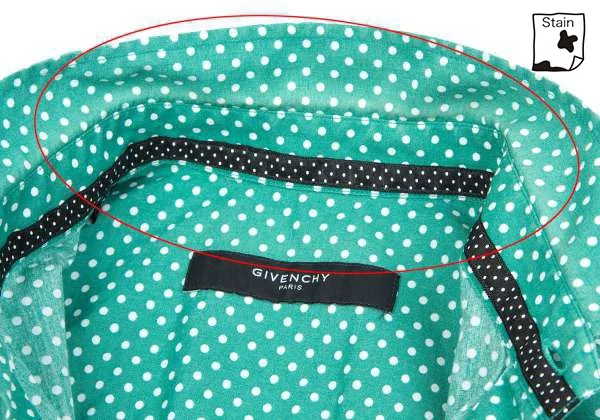 【最終値下げ】ジバンシィGIVENCHY コットンドット半袖シャツ グリーン14 1/2 37