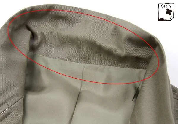 襟裏に薄汚れ、前身頃に小さなシミがあります(写真参照)。その他は目立ったシミ、汚れ、ほつれ等なくいい状態です。クリーニング済み