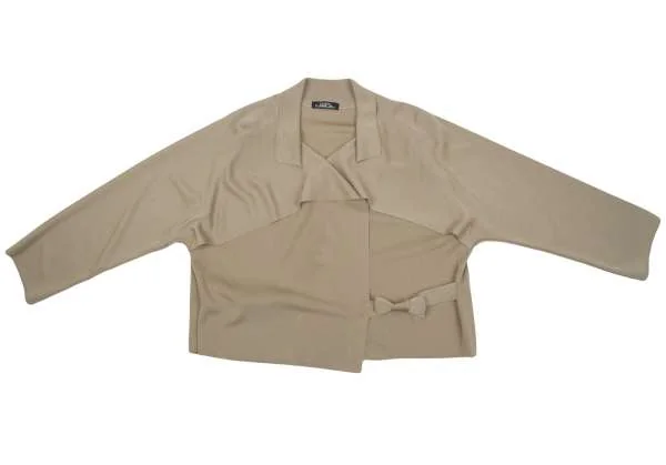 【SALE】イッセイミヤケ ペルマネンテISSEY MIYAKEPERMANENTE ドレープ紐留め袖変形カーディガン モカベージュM