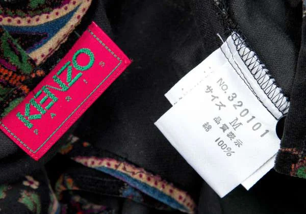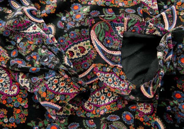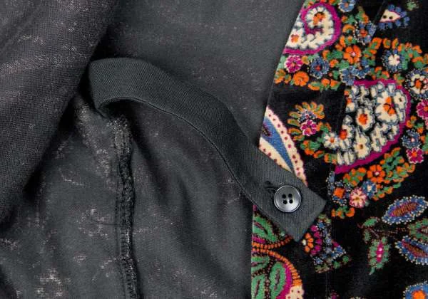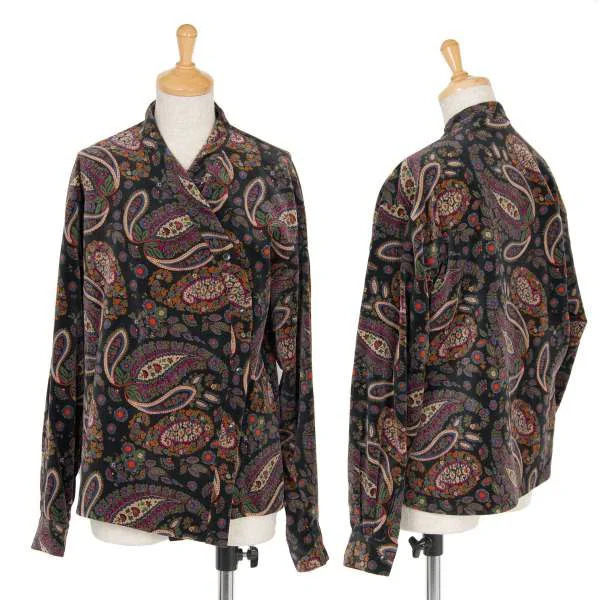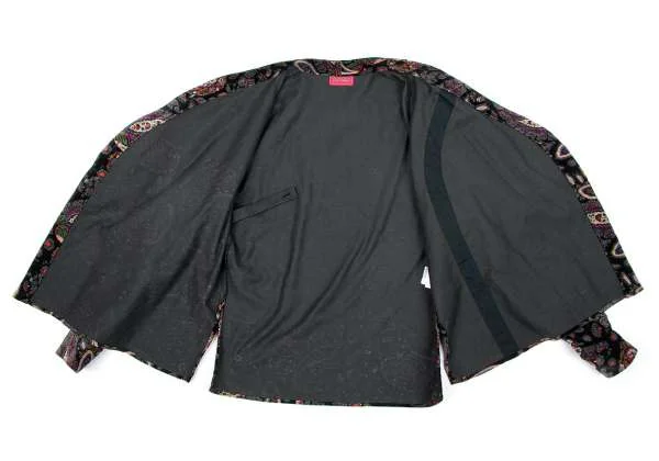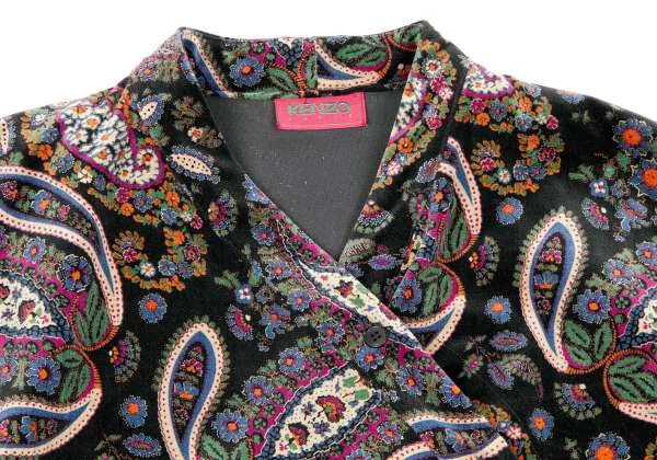【SALE】ケンゾー パリスKENZO PARIS コットンペイズリー柄変形ノーカラージャケット 黒青マルチM