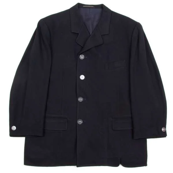 【最終値下げ】ヨウジヤマモト プールオムYohji Yamamoto POUR HOMME レーヨンクリアーボタン4Bダブルジャケット 紺S