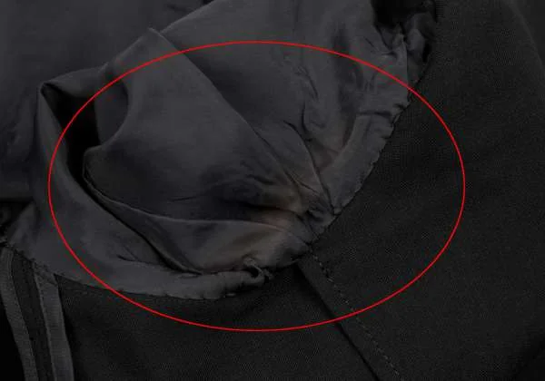 襟裏・袖裏・脇裏部分に汚れ、後ろ身頃部分に引っ掛けがあります(写真参照)。クリーニング済