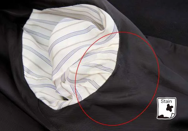 袖裏、左脇下に薄汚れがります(写真参照)。その他は目立ったシミ、汚れ、ほつれ等なくいい状態です。クリーニング済み