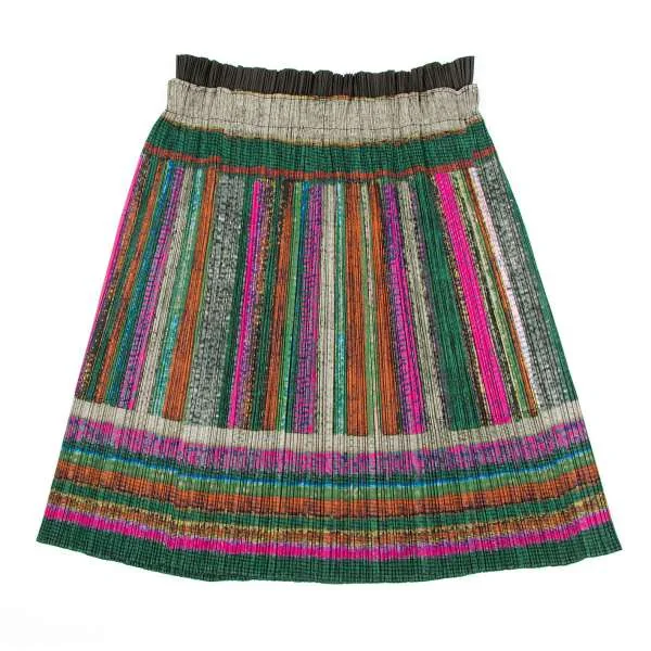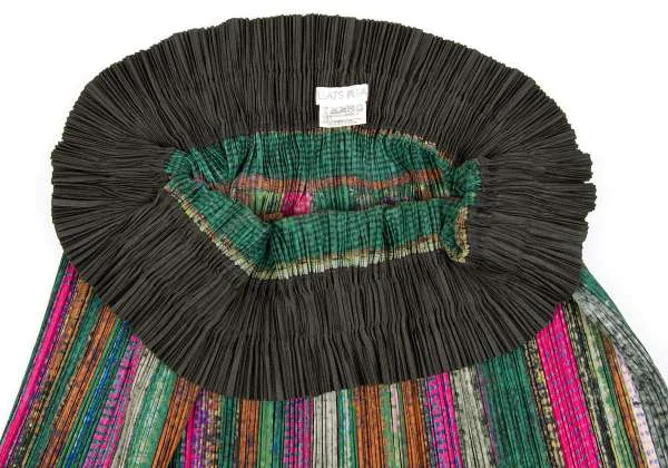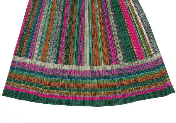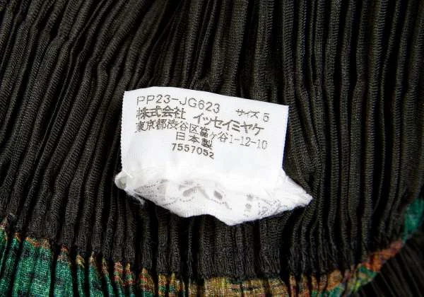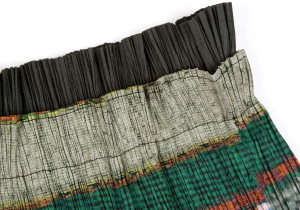 【SALE】プリーツプリーズPLEATS PLEASE ウエスト切り替えプリントスカート 緑マルチ5