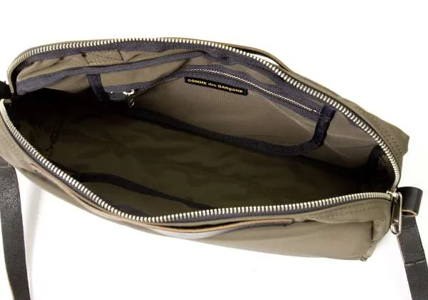 コムデギャルソンCOMME des GARCONS レザーベルトナイロンショルダーバック 茶 カーキ