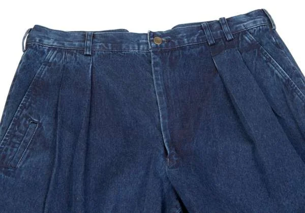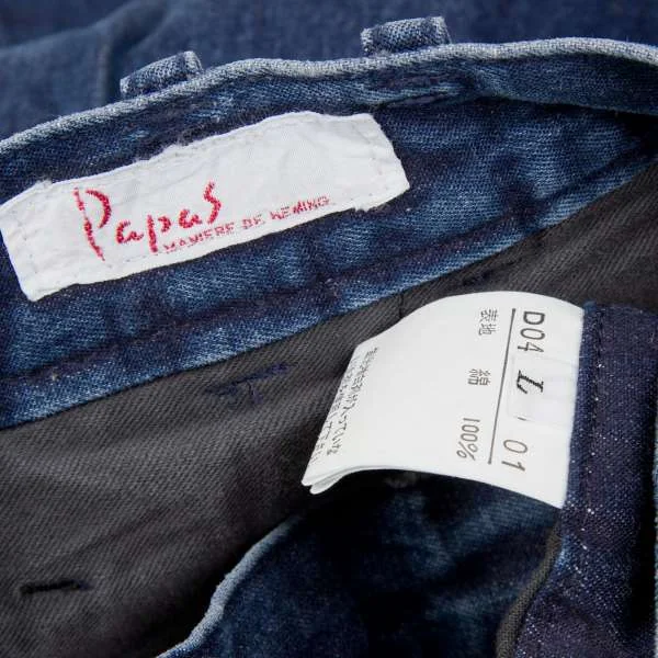 パパスPapas バックフラップポケットツータックデニムパンツ ブルーL
