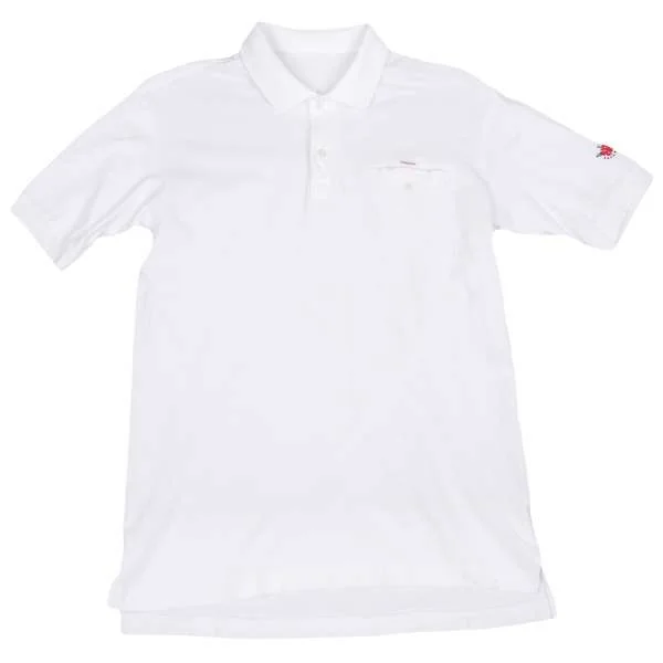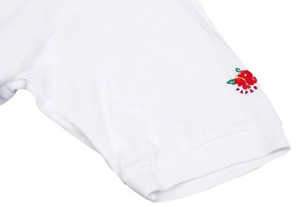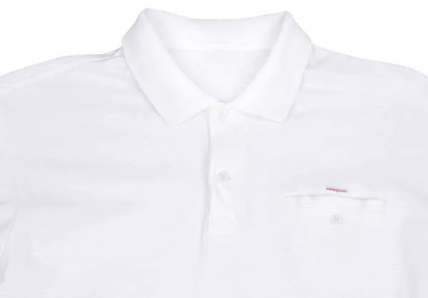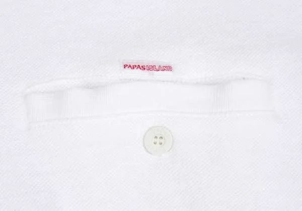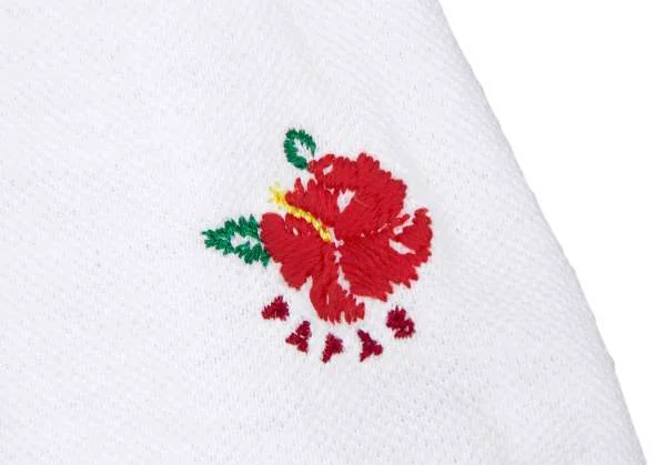 【SALE】パパスPapas 袖ハイビスカス刺繍鹿の子ポロシャツ 白M