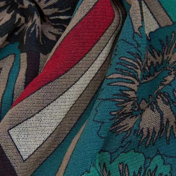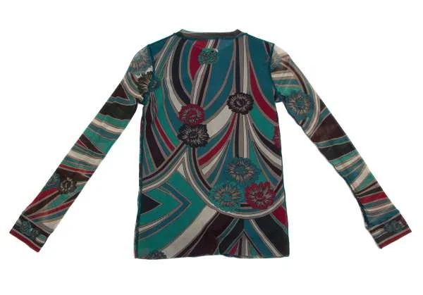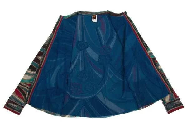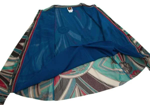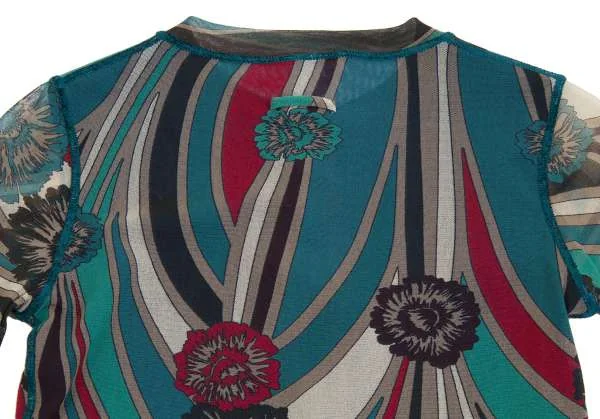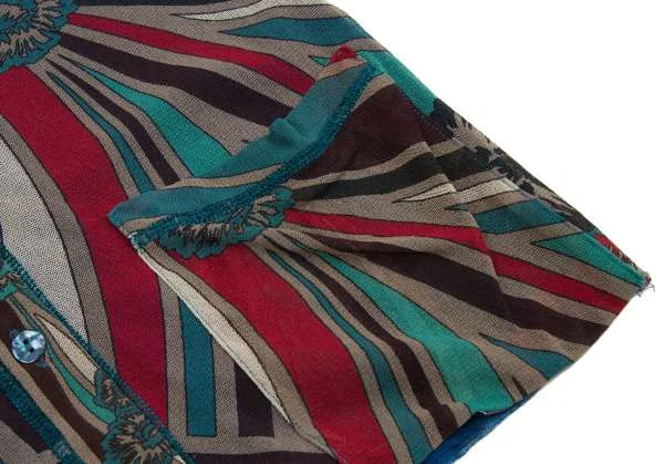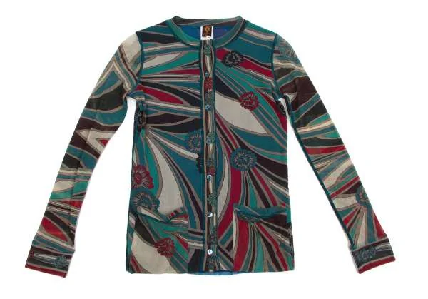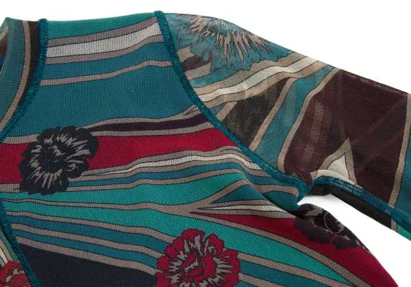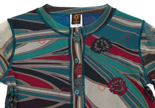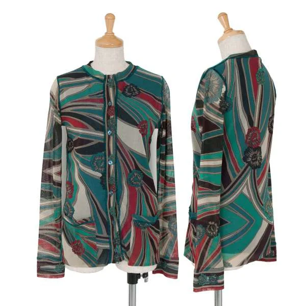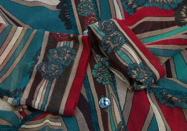【最終値下げ】ジャンポールゴルチエ ソレイユJean Paul GAULTIER SOLEIL パワーネットプリントレイヤードノーカラーシャツ エメグリーン赤他M