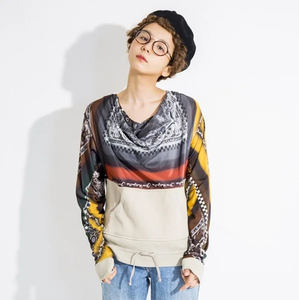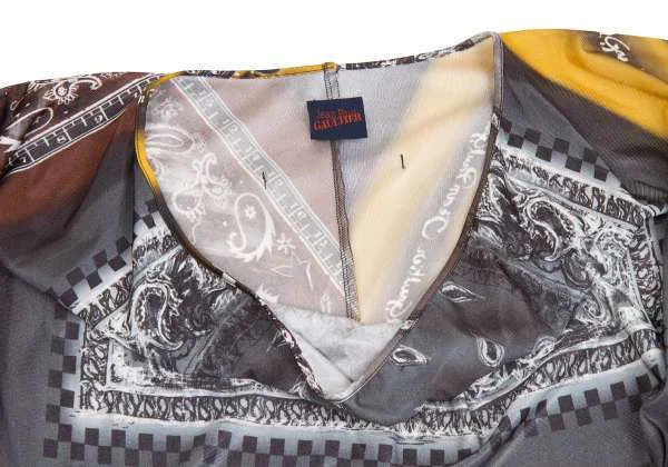 【最終値下げ】ジャンポールゴルチエJean Paul GAULTIER レーヨンポリプリント切替トレーナードッキングトップス グレー茶赤他 グレー茶他40