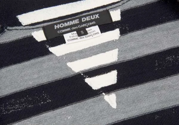 【最終値下げ】コムデギャルソン オムドゥCOMME des GARCONS HOMME DEUX 顔料ペイントボーダーカーディガンベスト 紺グレーオフS