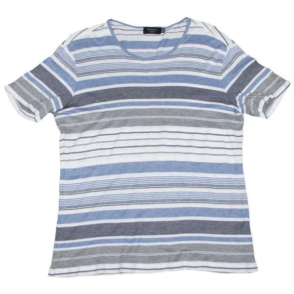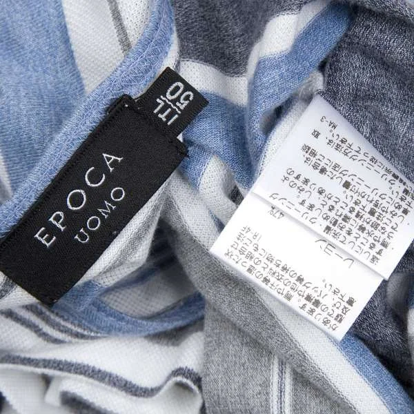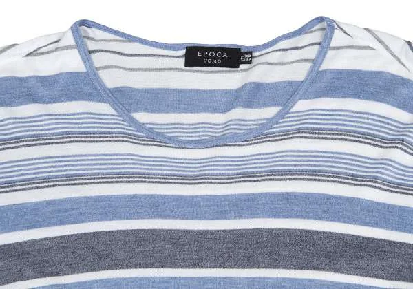 エポカEPOCA UOMO レーヨン混紡マルチボーダーカットソー 白水色グレー50