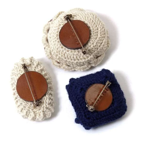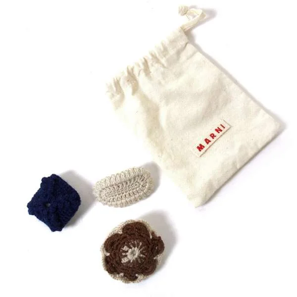 マルニMARNI ニットブローチ3点セット ベージュ紺茶