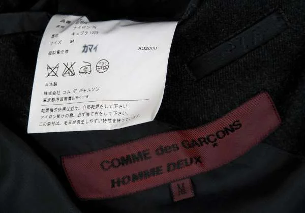 コムデギャルソン オムドゥCOMME des GARCONS HOMME DEUX ウールナイロン3Bセットアップスーツ チャコールグレーM
