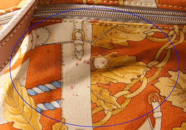 薄汚れ、擦れあり。内側に変色あり。(写真参照)その他に目立ったシミ、汚れ、ダメージ等なくいい状態です。