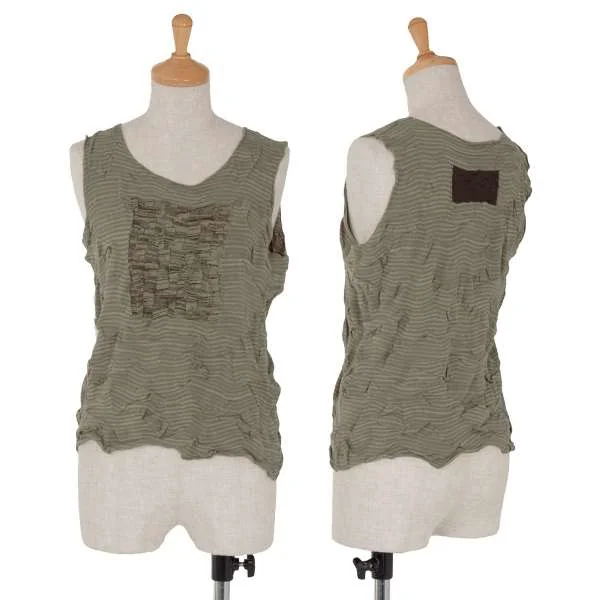 【最終値下げ】ヨーガンレールJURGEN LEHL パッチワークニットボーダータンクトップ グレーベージュM