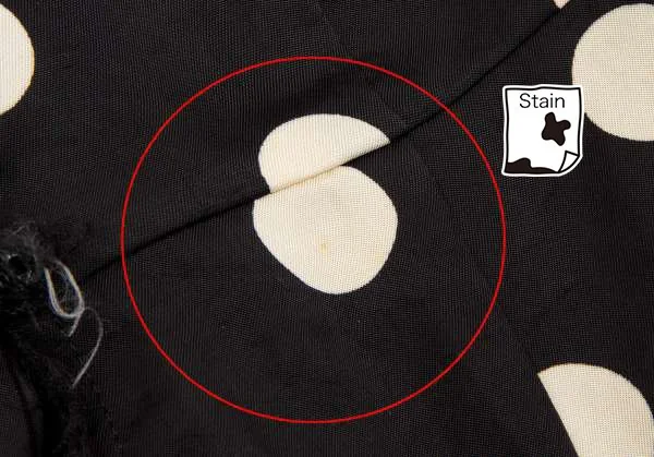 前身頃裾に点シミが有ります(写真参照)その他目立った汚れ、ほつれ等なくいい状態です。クリーニング済み
